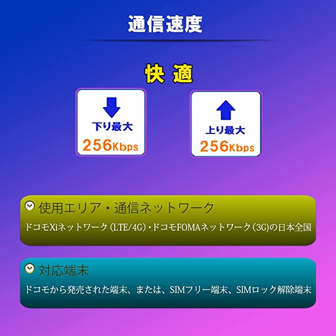 使い放題。通信速度:下り最大256kpbs/上り最大256kbps(1GB超過後速度制限となります。)