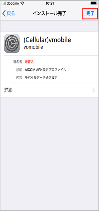 で https://www.aicom.ne.jp/public/themes/aicom/file/aicom-rcmvne.mobileconfig にアクセスする